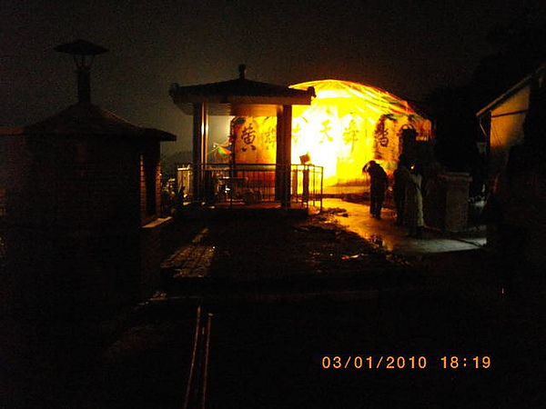 然後廟宇陷入火海,舞台的背景變成黑夜的山坡地。